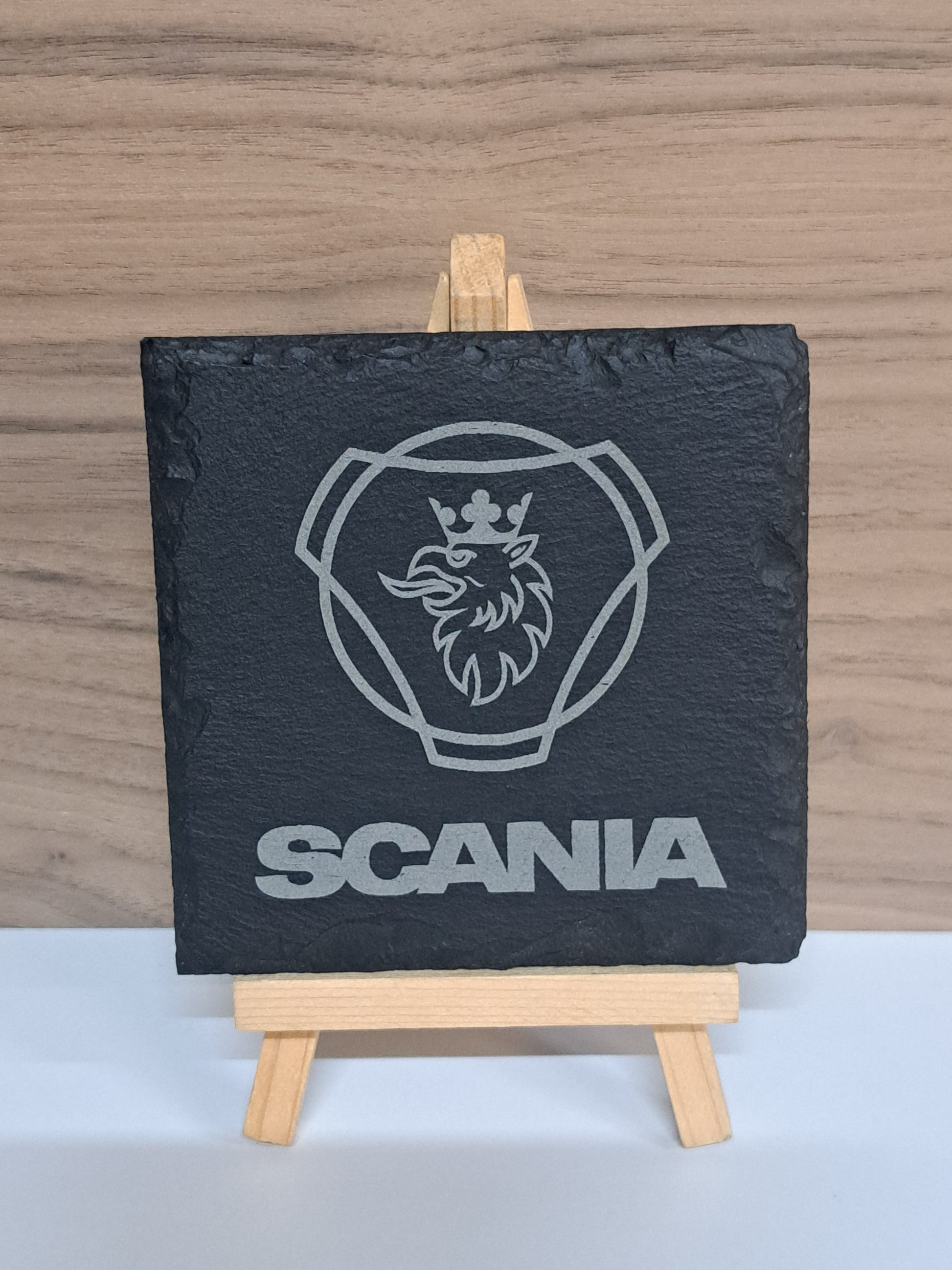 Scania Truck Lovers engraved slate coasters.